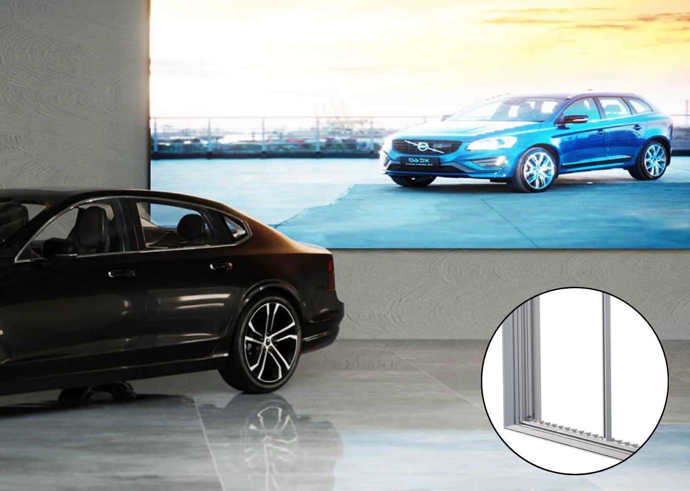 Con i suoi 150 mm di spessore, Lightroom si presenta come una cornice bifacciale, ideale per stampe backlight su tessuto applicate su entrambi i lati. In alternativa, per l’utilizzo monofacciale, è possibile inserire un telo blockout sul lato posteriore per impedire la dispersione della luce, mantenendo tutta l’intensità e la direzionalità dell’illuminazione sul fronte.