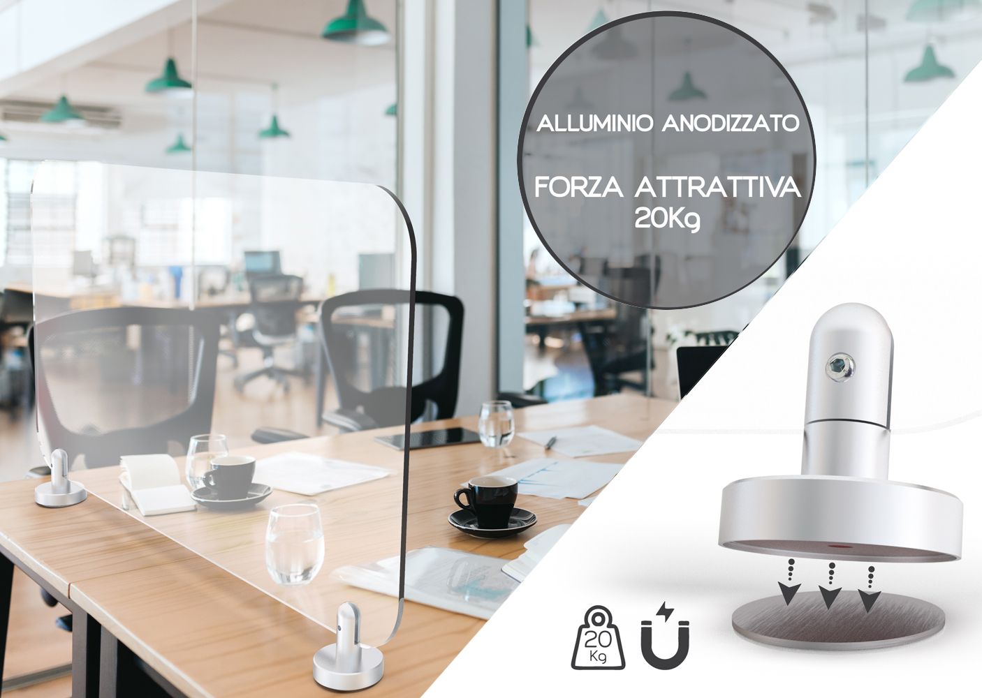 si adatta al legno, alla plastica, alla pietra, al vetro. e può essere utile in qualsiasi tipo di ambiente, dagli uffici ai negozi. kd visual ha realizzato una pinza magnetica rivoluzionaria, ideale per pannelli da 1 a 6 mm di spessore. disegnata e prodotta in italia, la pinza è realizzata in alluminio anodizzato e ha una forza attrattiva di 20 kg. la pinza magneticaKD VISUAL si adatta a tutti gli ambienti e a tutte le situazioni, in quanto è composta da una placca in acciaio inox AISI 430 dotata di biadesivo da fissare su qualsiasi tipo di superficie. la base della pinza, essendo magnetica, può essere facilmente spostata per essere posizionata ovunque si voglia. la pinza, essendo adatta a tutte le superfici, può essere applicata a tavoli, pareti, soffitto e a bandiera! ma noi di kd visual non ci siamo fermati qui! anche questo prodotto è entrato a fare parte della grande "famiglia" che kd visual da ideato per il progetto prevenzione: una serie di articoli studiati e realizzati appositamente per essere utili strumenti di prevenzione del contagio da covid 19. sfoglia gli altri articoli di questa sezione per scoprire tutti i nostri prodotti!