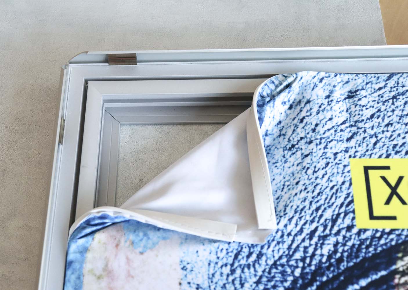 Il tessuto. Con Stormframe potrete dire addio al PVC e realizzare le vostre stampe in tessuto completo di guarnizioni.